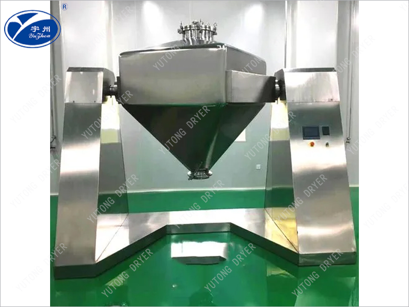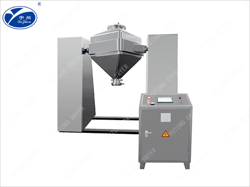 Load the materials into a square conical closed mixing bucket, with the symmetrical axis of the hopper forming an angle with the axis of the rotating shaft. Different components of materials move in three-dimensional space in the closed material door, producing strong flipping and diffusion effects, achieving the best mixing effect. The whole machine has a novel design, compact structure, beautiful appearance, a mixing uniformity of 99%, and a volume loading coefficient of 0.8.