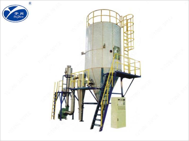 After being heated by clean air, it enters the drying tower and is transformed into tiny droplets using a two fluid (or three fluid) nozzle in the hot air inside the tower. It undergoes rapid heat exchange with the hot air, evaporates the water (or solvent) in the liquid material, and is discharged with the hot air to obtain powdered products.