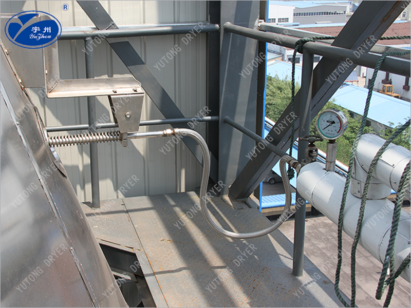 The air enters the heater through the filter, is exchanged into hot air, and enters the hot air distributor on the top of the drying chamber, so that the air uniformly enters the drying chamber in a rotating shape or parallel axis. The material liquid needs to be sieved and pumped by high pressure to the nozzle located at the top center of the drying chamber to atomize the material liquid evenly, so that the surface area of the droplet is greatly increased, and the contact with the hot air causes the water to evaporate rapidly and dry into granular products in a very short time. Most of the products are collected by the discharge port located at the bottom of the tower, and the waste gas and small powder particles are separated by the rotary wind separator. The finished product is collected by the collection cylinder at the lower end of the cyclone separator, and the exhaust gas is discharged by the extraction fan.