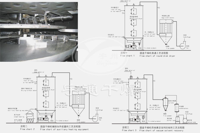 Each layer of drying disc can be separately passed into the hot medium or cold medium, heating or cooling the material, the material temperature control is accurate and easy.