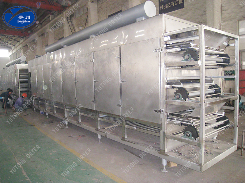 Introduction:The DW series multi-layer belt dryer is a continuous drying equipment used in mass production, used for drying sheet, strip, and granular materials with good breathability. It is particularly suitable for dehydrated vegetables, catalysts, traditional Chinese medicine decoction pieces, and other materials with high moisture content and temperature requirements; This series of dryers has the advantages of fast drying speed, high evaporation intensity, and good product quality. For dehydrated cake like paste materials, they need to be granulated or made into strips before drying.