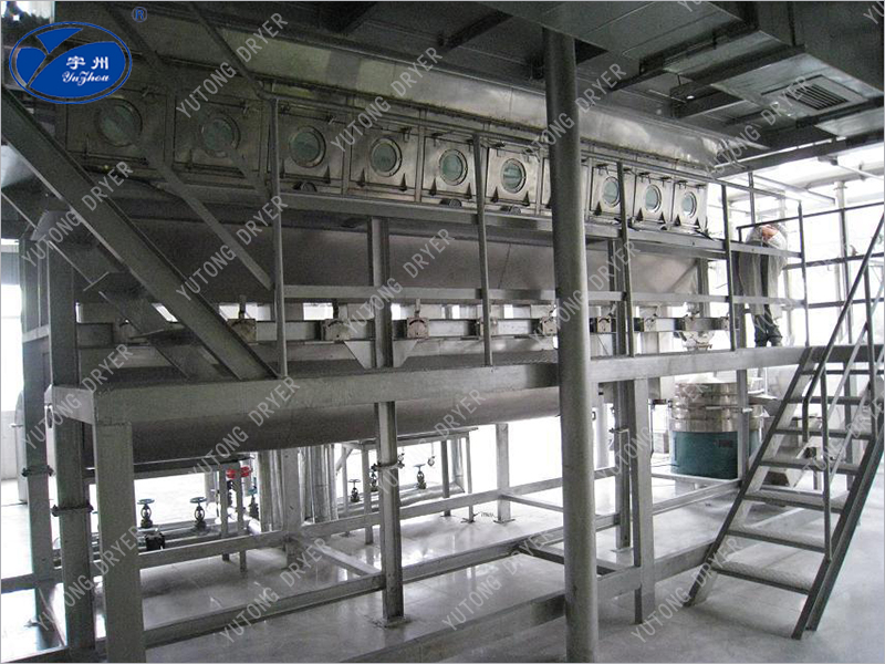 粉狀物料投入料斗密閉容器內,由于熱氣流的作用,使粉末懸浮呈流化狀循環流動,達到均勻混合,同時噴入霧狀粘結劑潤濕容器內的粉末,使粉末凝成疏松的小顆粒,成粒的同時,由于熱氣流對其作高效干燥,水份不斷蒸發,粉末不斷凝固,引過程重復進行,形成理想的,均勻的多微孔球狀顆粒,在容器中一次完成混合,造粒,干燥三個工序。