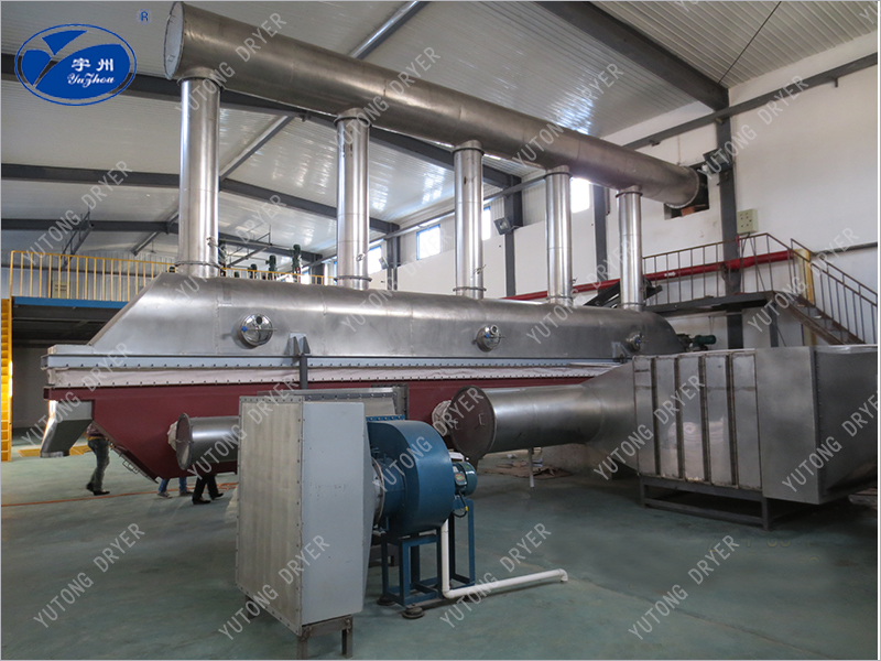 3. 由于施加振動,可使最小流化氣速降低,因而可顯著降低空氣需求量,進而降低粉塵層夾帶,配套熱源,風機,旋風分離器等也可相應縮小規格,成套設備降低,節能效果明顯。可方便地依靠調整振動參數來改變在機內滯留時間。其活塞流式的運行降低了物料粒度均勻性及規則性要求,易于獲得均勻的干燥產品。