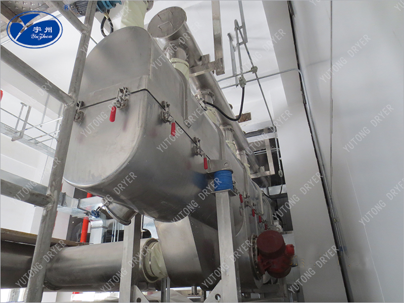 ③由于施加振動,可使最小流化氣速降低,因而可顯著降低空氣需求量,進而降低粉塵層夾帶,配套熱源,風機,旋風分離器等也可相應縮小規格,成套設備降低,節能效果明顯。可方便地依靠調整振動參數來改變在機內滯留時間。其活塞流式的運行降低了物料粒度均勻性及規則性要求,易于獲得均勻的干燥產品。