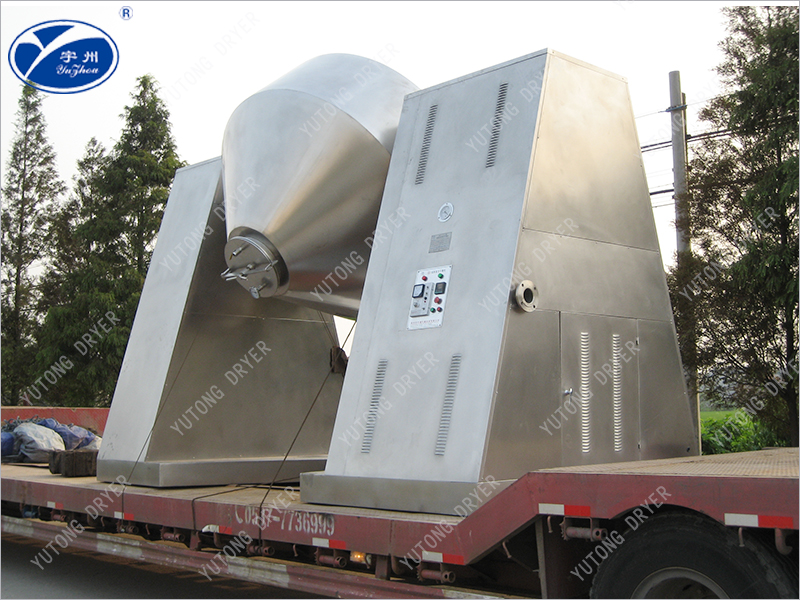 SZG系列雙錐回轉(zhuǎn)真空干燥機(jī)為雙錐形的回轉(zhuǎn)罐體,罐內(nèi)在真空狀態(tài)下,向夾套內(nèi)通入蒸汽或熱水進(jìn)行加熱,熱量通過罐體內(nèi)壁與濕物料接觸。濕物料吸熱后蒸發(fā)的水汽,通過真空泵經(jīng)真空排氣管被抽走。由于罐體內(nèi)處于真空狀態(tài),且罐體的回轉(zhuǎn)使物料不斷的上下,內(nèi)外翻動,故加快了物料的干燥速度,提高干燥效率,達(dá)到均勻干燥的目的。