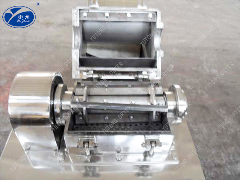 該機(jī)是采用立式粉碎機(jī)構(gòu),不受物料粘度、硬度、軟度等限制,對任何物料都能起到較好的粉碎作用。