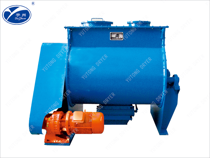 本系列混合機以強烈、高效混合為特點、臥式筒體內兩根攪拌等速反向旋轉,上特殊布置的槳葉確保物料徑向、環向、軸向三向運動,形成復合循環,在極短的時間內達到均勻混合。