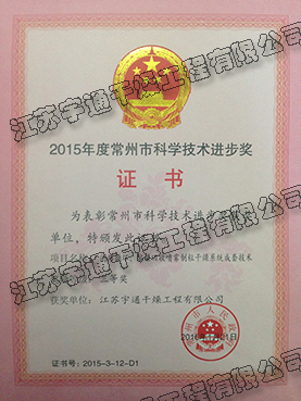 江蘇宇通干燥工程有限公司“閉路循環、溶媒回收噴霧制粒干燥系統成套技術”項目在常州市科學技術進步獎中榮獲“三等獎”。