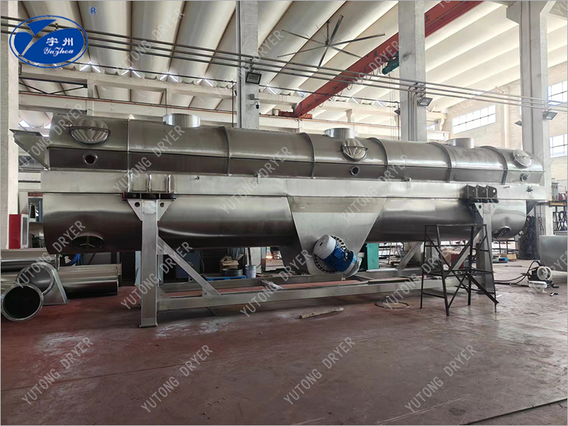 物料自進料口進入機內,在振動力作用下,物料沿水平面流化床拋擲,向前連續運動,熱風向上穿過流化床同濕物料換熱后,濕空氣經旋風分離器除塵后由排風口排出.干燥物料由排料口排出。