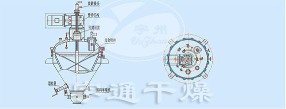 2、頂部驅(qū)動(dòng),設(shè)備在進(jìn)料、干燥、混合、出料工藝過(guò)程中與外界空氣無(wú)接觸,無(wú)泄漏,無(wú)死角。