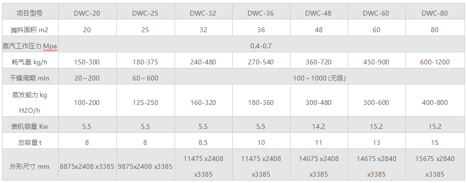 4、攤料面積由25-80平方米,七種大小不等的機型,可滿足多種物料和不同生產規模的需要。