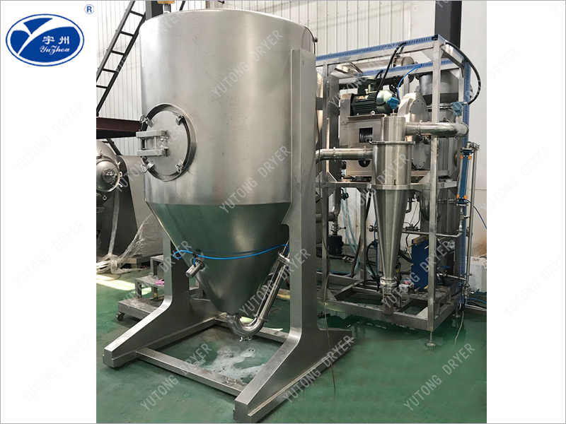 閉路循環(huán)噴霧干燥機,是有機溶劑類料漿干燥的專用設(shè)備。該機組是由氮氣(或其他惰性氣體)作為干燥循環(huán)氣體,干燥過程物料可以防止氧化、同時有機溶劑可以回收。閉式循環(huán)噴霧干燥機一般用于乙醇、丙酮、己烷等有機溶劑類制備料漿的粉體干燥,設(shè)備采用防爆設(shè)計,干燥過程安全環(huán)保。