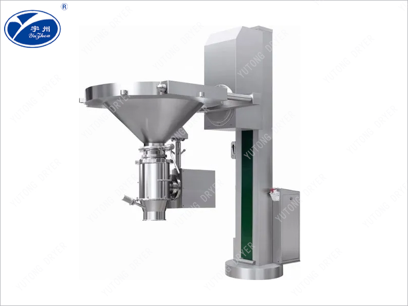 TJG 系列固定提升加料機由兩部分組成,即提升機及底座。提升機由機架、液壓提升系統(tǒng)及料門翻轉(zhuǎn)機構組成。工作時,先將提升機的料門與料桶扣合,啟動提升操作桿,料門與料桶一起上升,啟動翻轉(zhuǎn)操作桿,料桶即可番轉(zhuǎn)180度,呈底桶向上姿態(tài)并移動到所需位置,利用料門上出料蝶閥,可很容易將物料加入所需的工藝設備中。